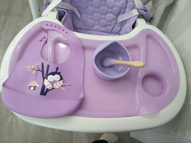Very cool set. I took a plate, a spoon and an apron. Pretty very much. The plate is heavy all silicone, with Velcro to the table. The spoon is very nice in the hand. The color and description completely coincides with the reality, which can not but please;). Track tracked. And pleasantly the store pleased with the gifts. In general, I definitely recommend to the order.