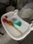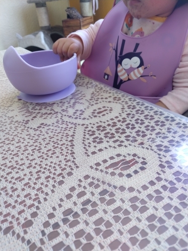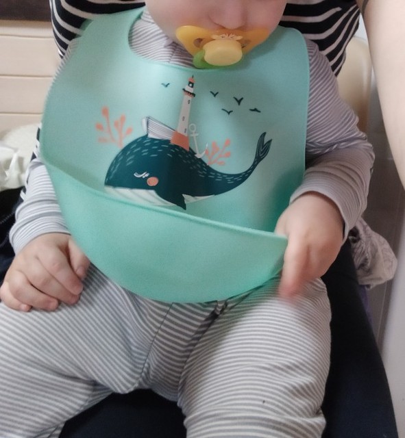The bib is super! Soft and gentle. Spoon to us in 5 months Big, in the mouth barely moisture, the plate has not been used yet