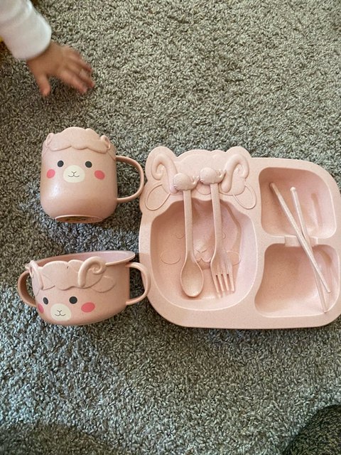 6Pcs/ Set Baby Cartoon Dinosaur Tableware Children’s Dinnerware Set Home Anti-hot Wheat Straw Training Plate Kids Feeding Dishes