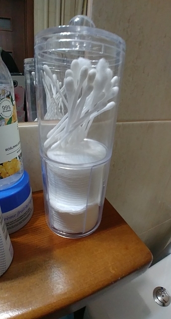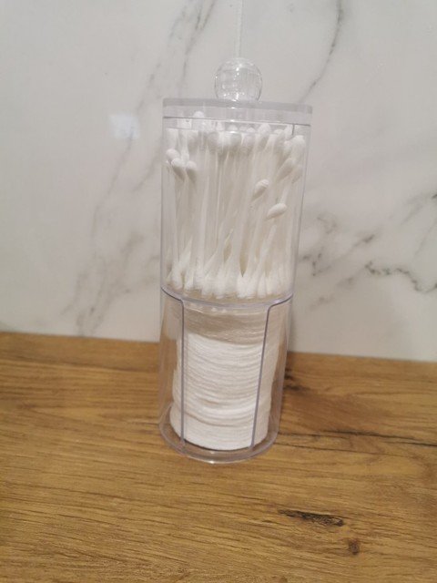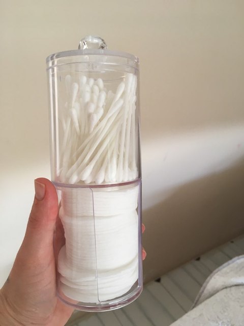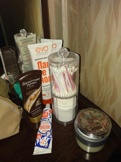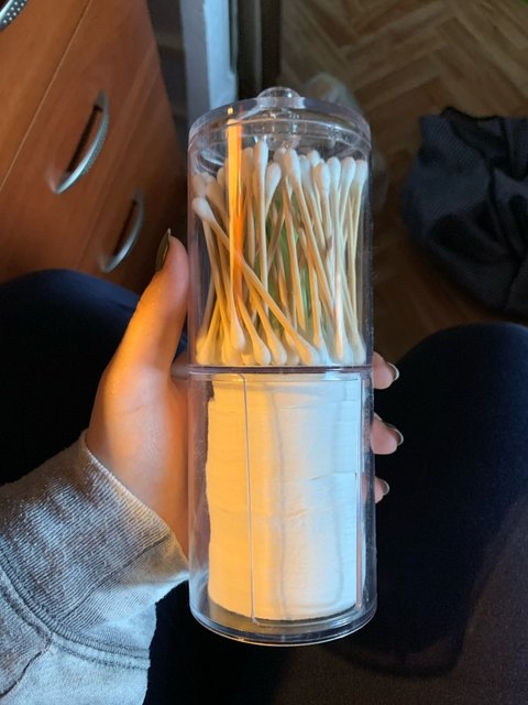 Convenient organizer for cotton pads and sticks. The parcel to Kiev came in three weeks.