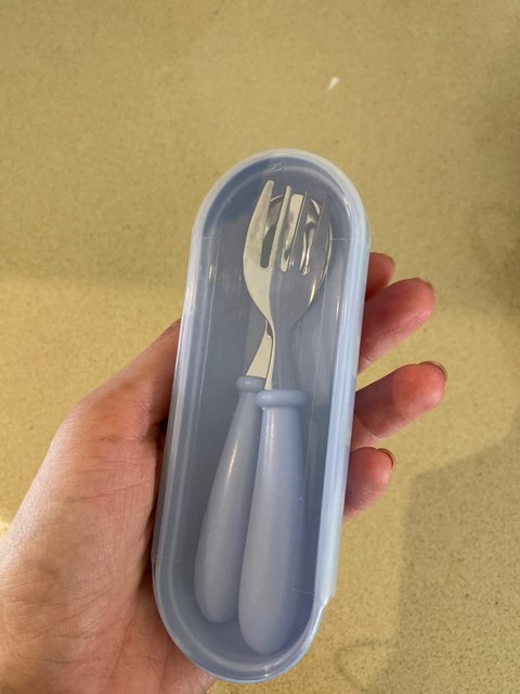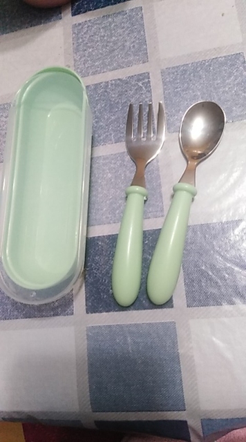 В целом набор нравится. Ложкой активно пользуемся, удобная. Вилка тоже норм, цепляет еду хорошо, но при этом не очень острая, можно и ребёнку дать. Цвет как на фото, чехол удобный, закрывается плотно.