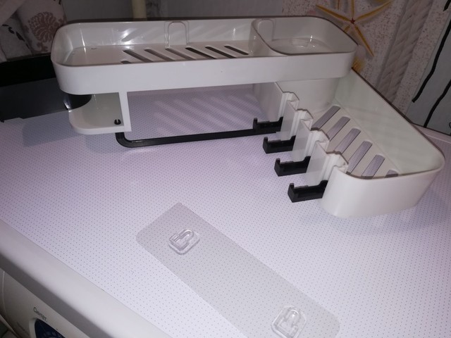 Удобная полочка, хлипенький пластик, держится неуверенно. Посмотрим как будет служить.