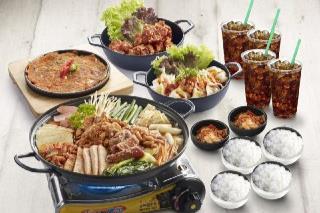 Daebak Army Stew + Kimchi Pancake + Fried Chikin (Sweet Spicy)+ Fried Pork Dumplings (Kimchi) + 4 White Rice + 4 Coke + 2 Banchan.