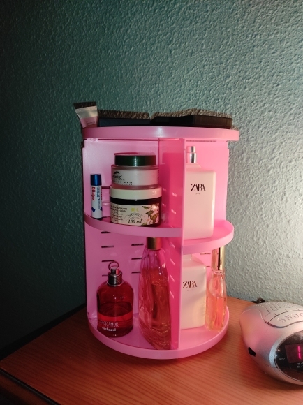 Llegó bastante rápido, fácil de armar, gira súper bien, tengo todos mis productos de belleza muy ordenados ahora, contenta con la compra.