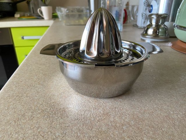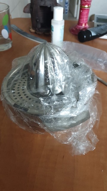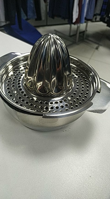 Сок выжимает, нет пластика- главные требования. На вид тонкий алюминий а по факту норм, крепкая. А самое главное после использования сполоснул и чисто!