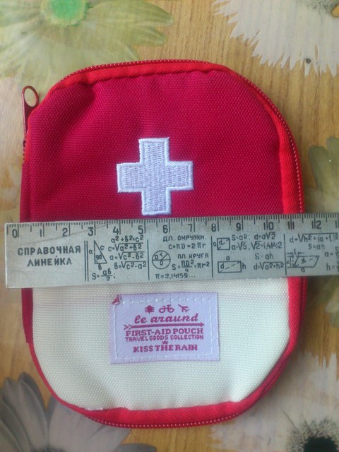 A pretty first aid kit, a small one to carry constantly in a bag of essential medicines, for this first aid kit and ordered. Neat, the fabric is dense, a pair of threads stick out, but these are trifles. Thank you, very satisfied!