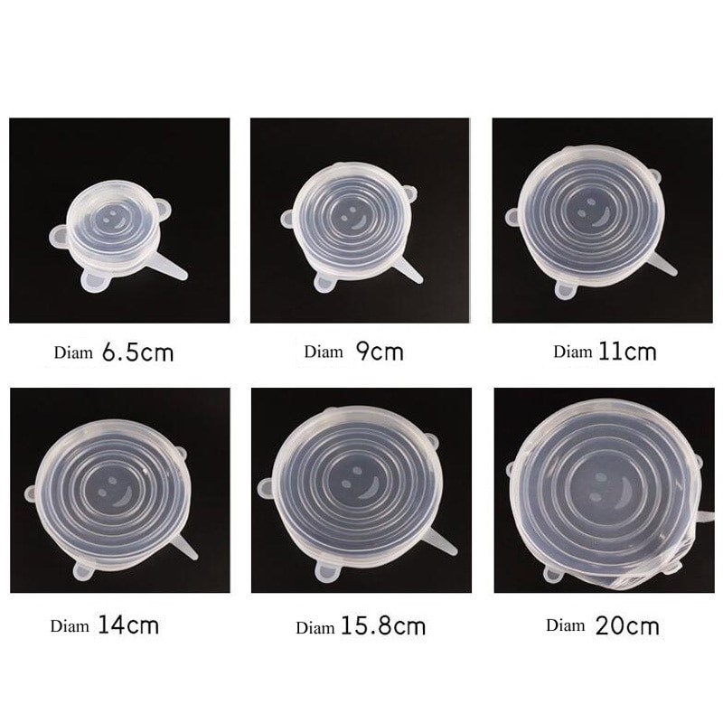 【6 SILICONE LIDS IN VARIOUS SIZES】The set includes 6 clear silicone covers in various sizes. Thanks to their stretchable material, the food lids will easily fit most bowls, pots, containers, mugs, cups, cans, jars, and you can even use them to cover your half-cut melon or watermelon.