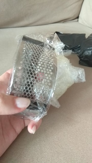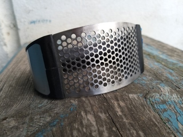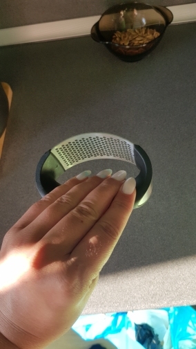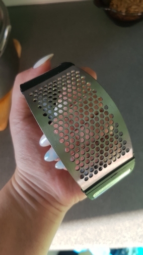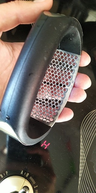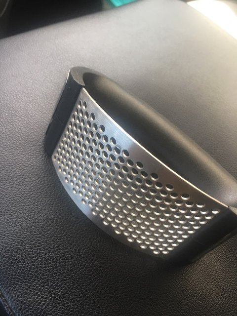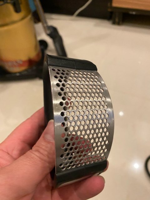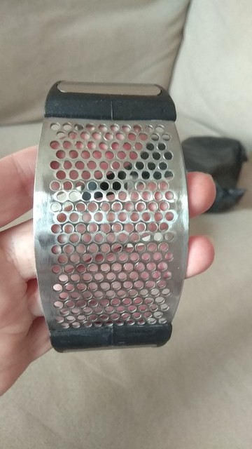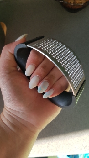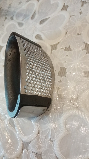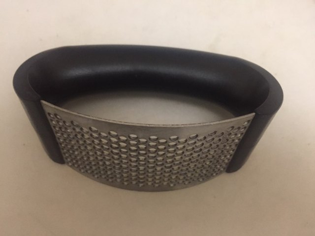 I received the goods. The side that we press garlic, smooth. Therefore, we have to make efforts to grind garlic. It would be easier to have a toothed fine, like a grater.