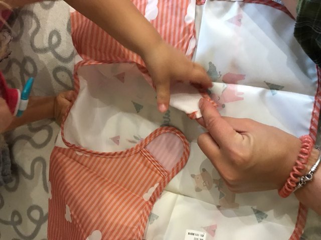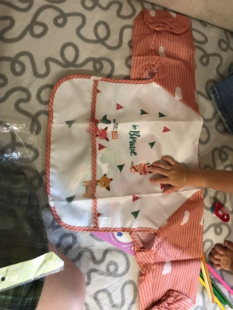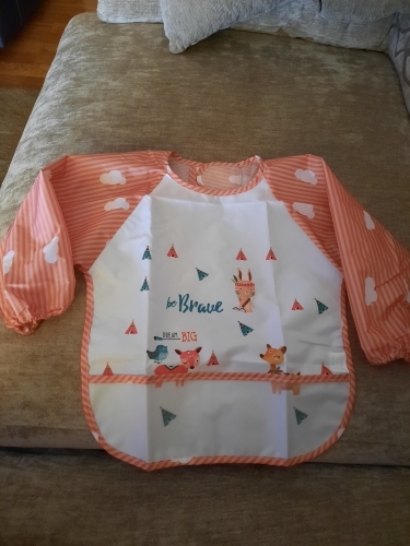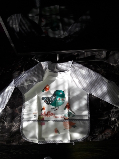 Yay, there’s no food left. Big enough. The child for 8 months is straight free. Great fit probably for a year. But nothing, the sleeves fell out and ran for lunch.